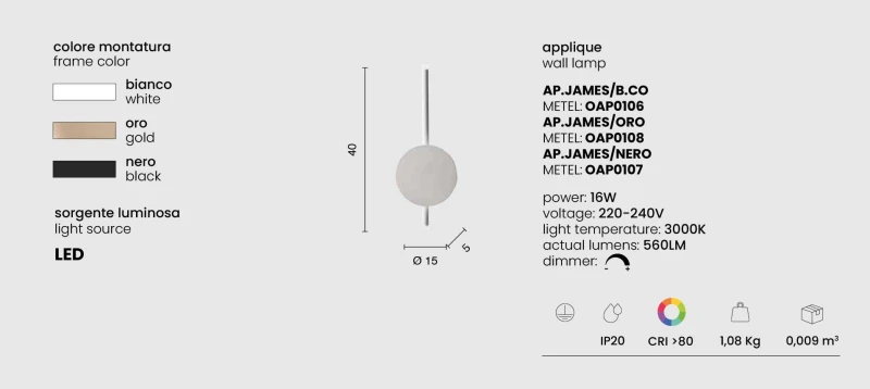 Applique LED in metallo verniciato. Disponibile in diversi colori.