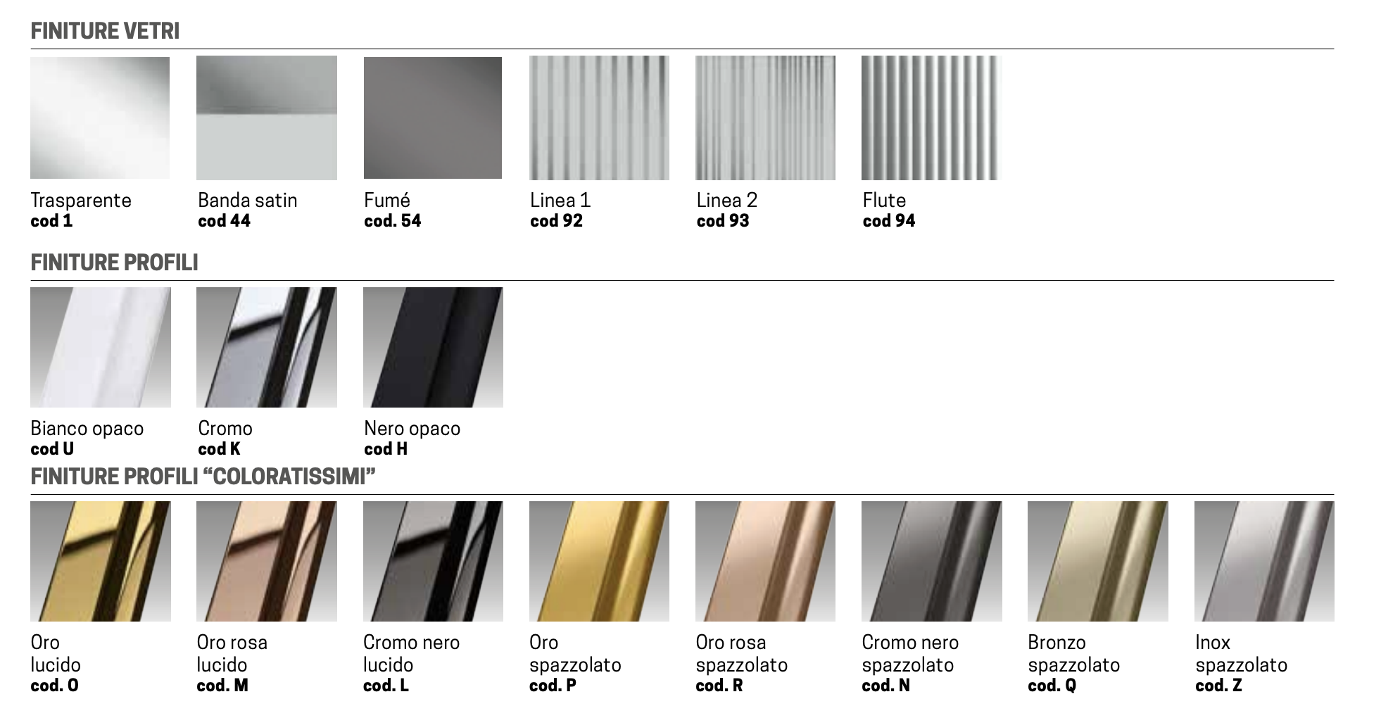 - Colore profilo: Nero , Cromo , Cromo nero lucido , Oro rosa lucido , Cromo nero spazzolato , Oro , Oro spazzolato , Bronzo spazzolato , Oro rosa spazzolato , Bianco Morbido – saldo U , Inox Spazzolato