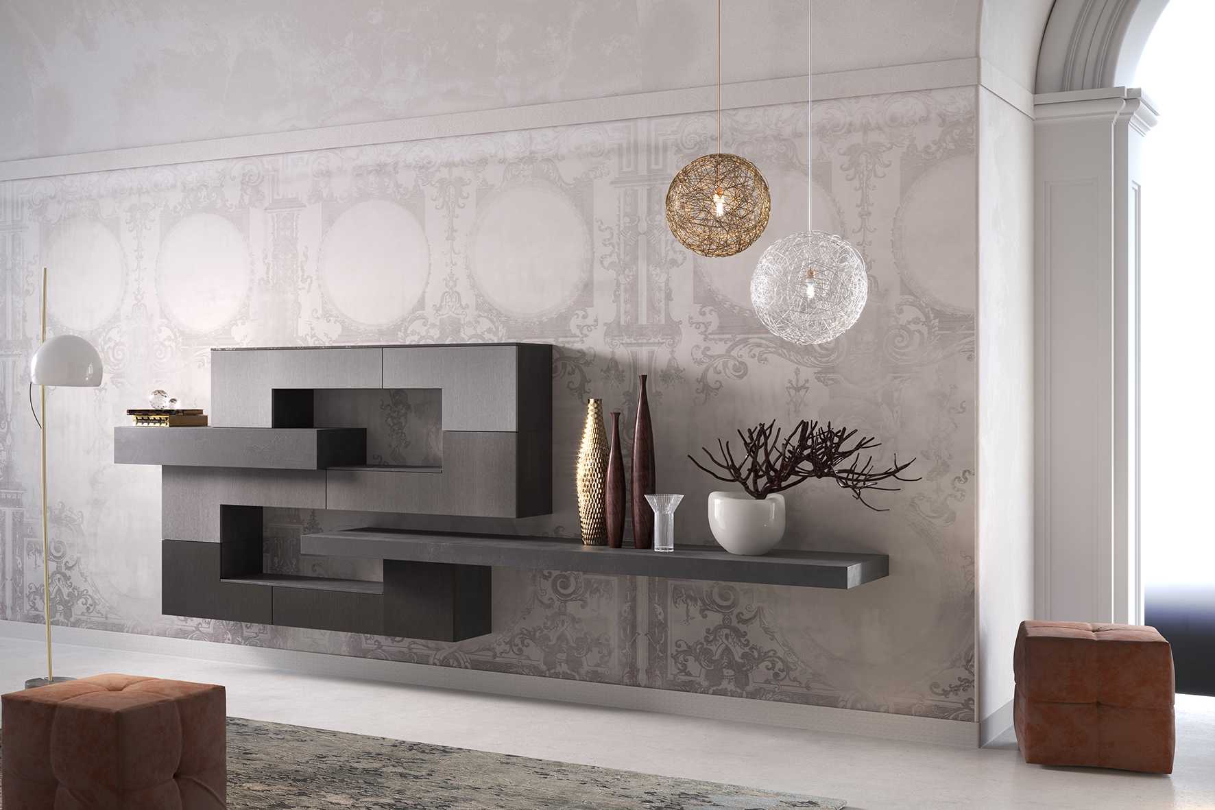 Consiglio d’arredo: utilizza il grigio fumo come base neutra e aggiungi accenti di colore per un effetto dinamico e moderno.