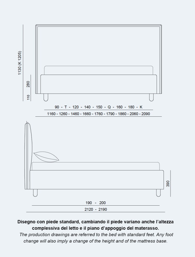 Il letto è disponibile nelle seguenti misure: