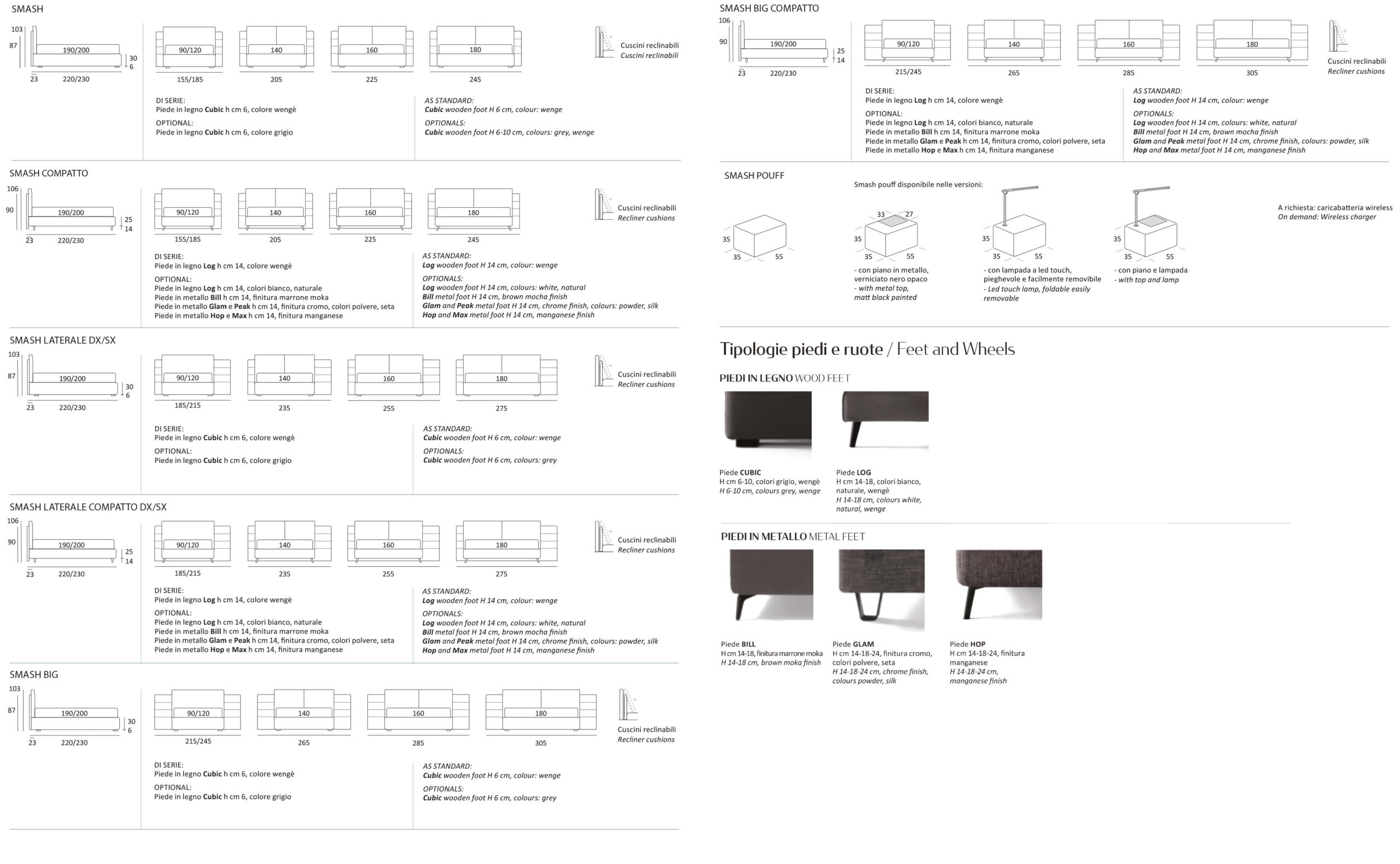 Disponibile in diversi colori e finiture in tessuto. Rivestimento completamente sfoderabile nelle versioni tessuto, pelle ed ecopelle.