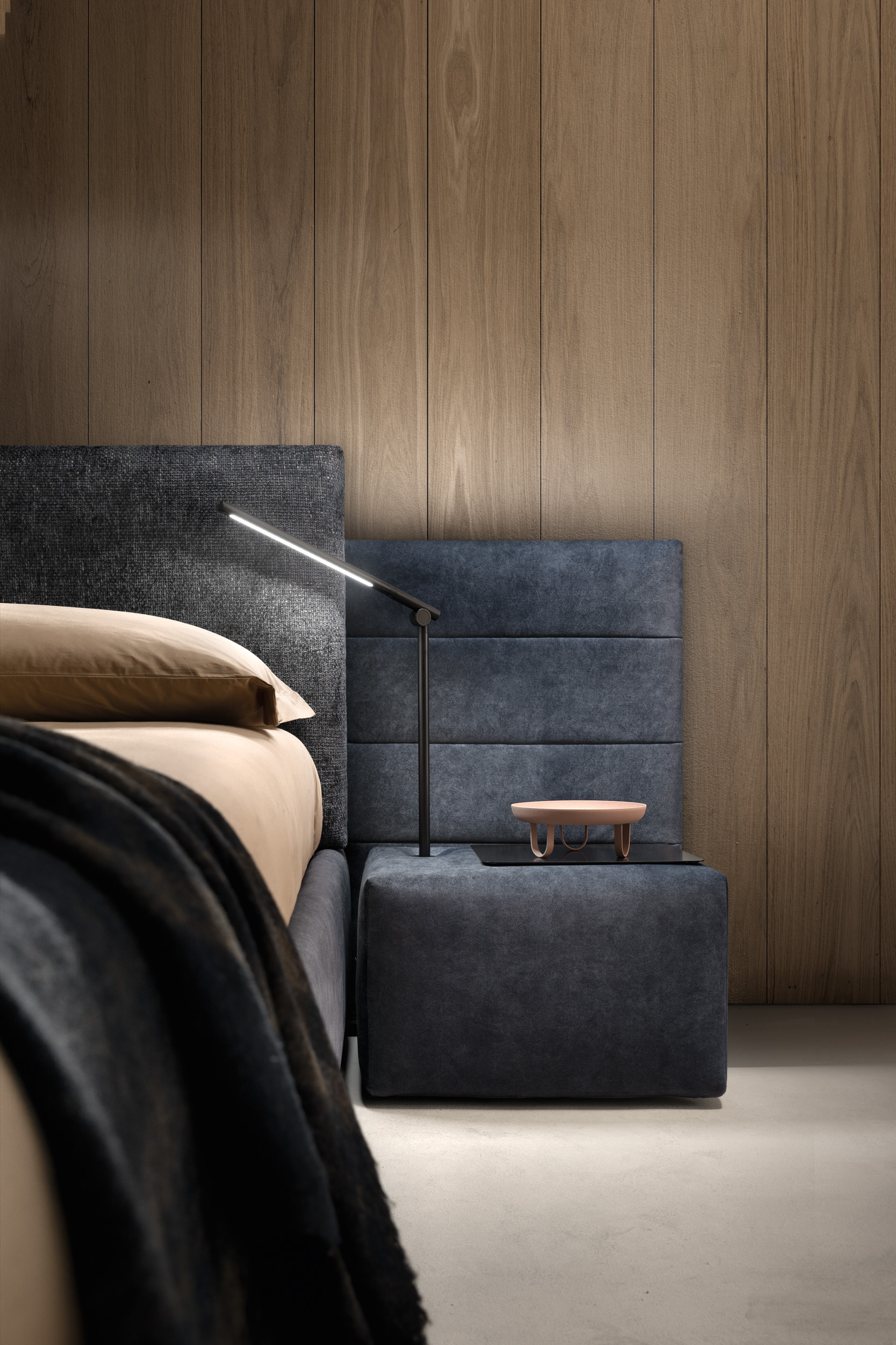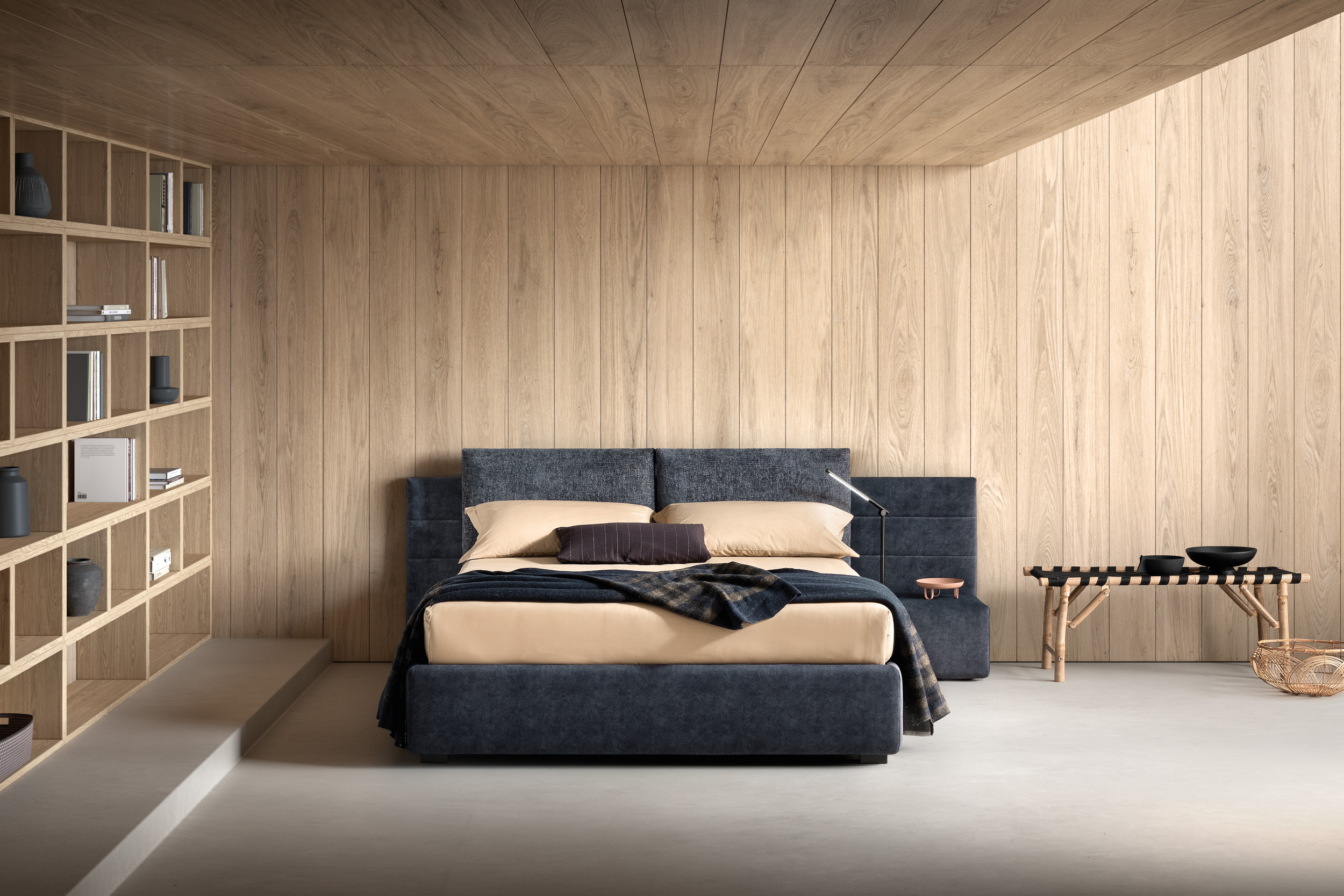 Letto imbottito dal design essenziale e accogliente, realizzato con struttura in legno stagionato e agglomerato in classe E1. Pensato per offrire comfort e solidità, si distingue per le linee pulite e l’eleganza materica.