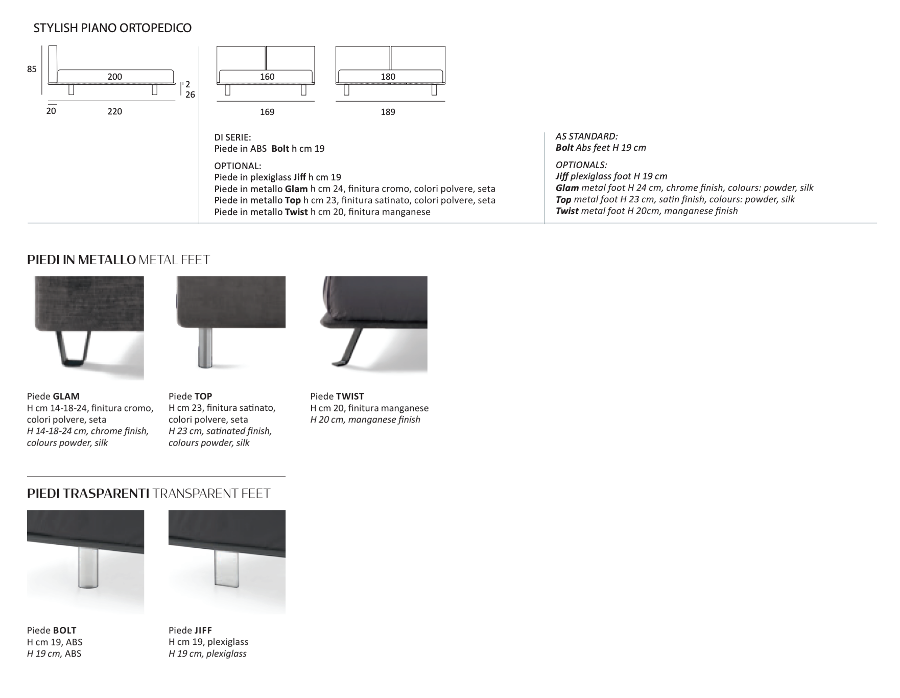 Disponibile in diversi colori e finiture in tessuto. Rivestimento completamente sfoderabile nelle versioni tessuto, pelle ed ecopelle.