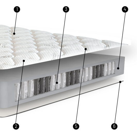800 molle indipendenti in versione Pocket a 7 zone di portanza differenziata con un buon livello di elasticità che lo rende strutturalmente equilibrato e portante.