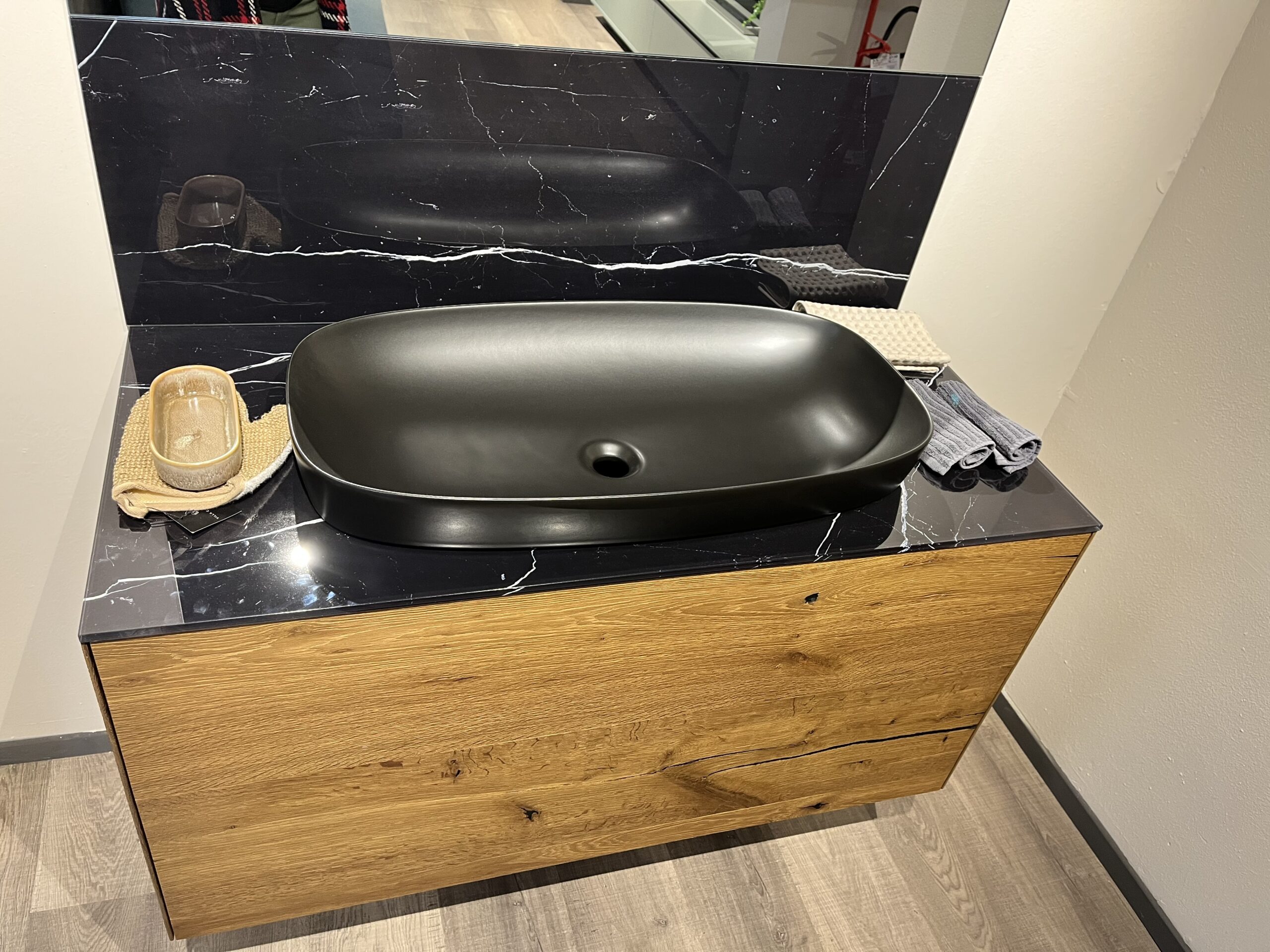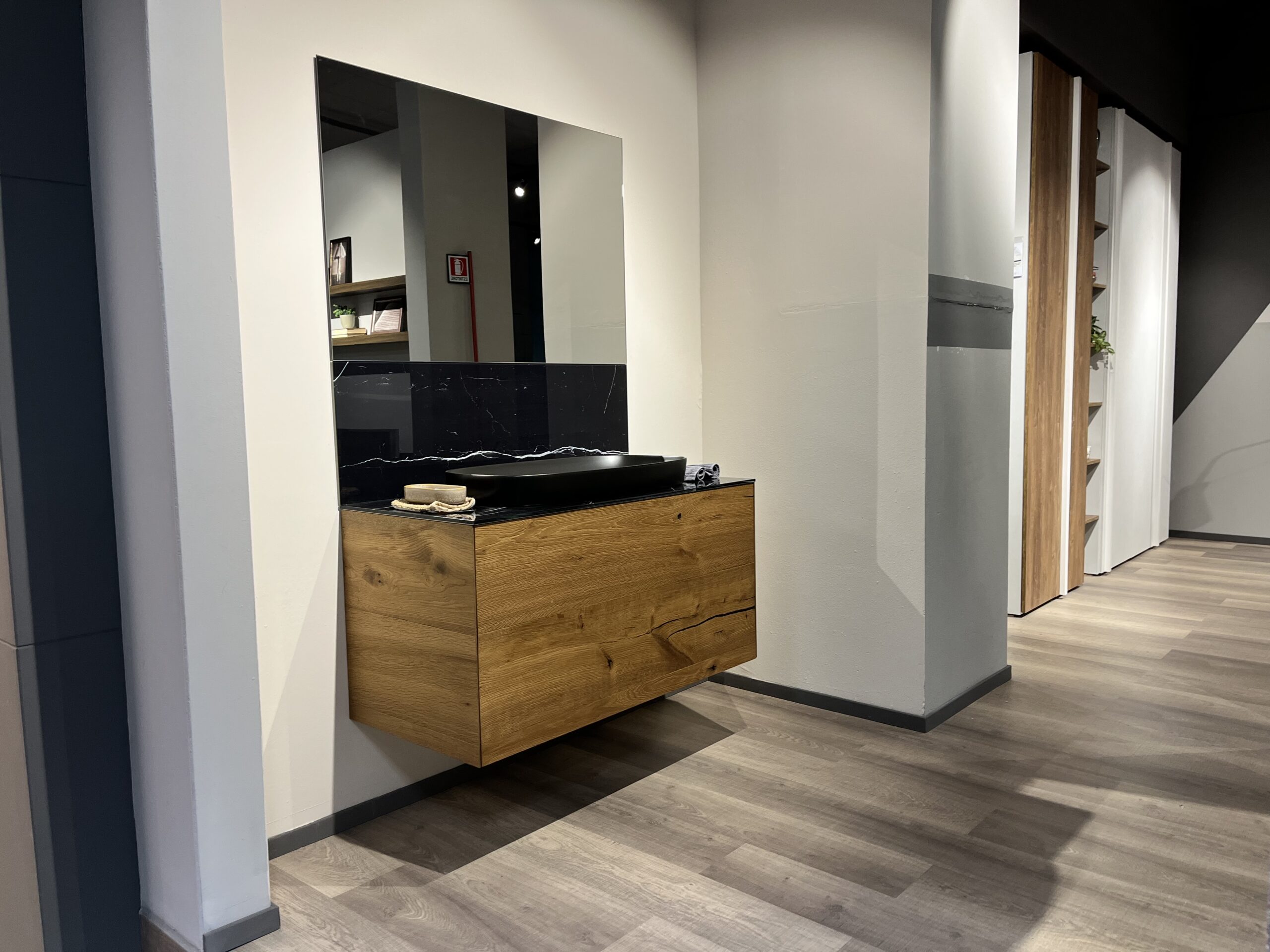Bagno L.110 P.52 H.55 finitura Wildwood + top e schienale XGlass Marquinia