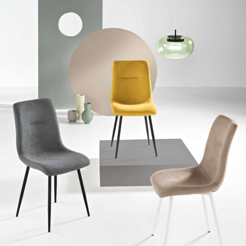Sedia in tessuto con imbottitura. Disponibile in diversi colori.